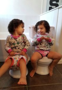 The girls are loving that they each have their own toilet that looks identical to mine. If you have twins, do not even try to potty train with just one toilet because it is literally impossible unless you train them at separate times. If your twins are anything like mine, then they will be jealous if only one is learning something new.
