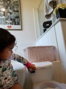 I think the twins favorite part is the noise the toilet makes when it flushes because it sounds just like the adult toilet. Arie loves to yell “good job” to herself after she goes and it is the cutest thing ever. It is not so cute when she tries to take her pee on her own to dump it, but that is another story. Layla is not as comfortable as Arie, but it is important to remember that twins are not the same person and will learn at a different speed. I am so proud of both of them for their progress.